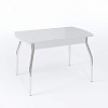 Раскладной кухонный стол со стеклом Стол Чикаго СТ МП 1100(1400)*680*750 Ноги 01 гальваника (стекло Серое (графит) глянцевое цвет СР) - практичный и современный предмет мебели, который благодаря большому количеству модификаций подойдет к любому интерьеру и будет долго служить вашей семье.