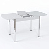Раскладной кухонный стол со стеклом Стол Чикаго СТ МП 1100(1400)*680*750 Ноги прямые 02 гальваника (стекло Бежевое глянцевое цвет ВН) - практичный и современный предмет мебели, который благодаря большому количеству модификаций подойдет к любому интерьеру и будет долго служить вашей семье.